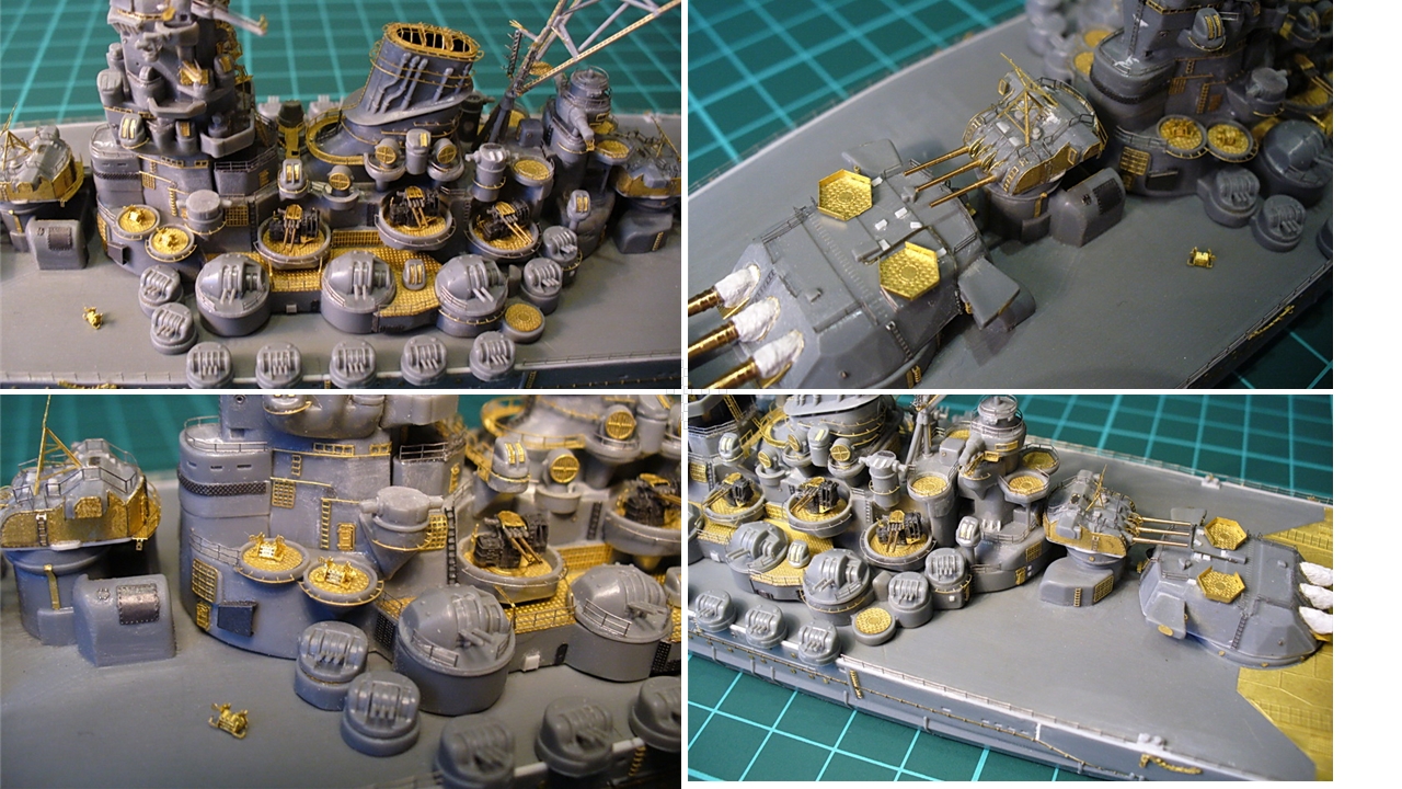 В работе ориентируюсь на фотографии самой большой модели 1:35, которая находится в музее Ямато. Использую супер-клей от Тамии, дорого, но я им очень доволен. Не схватывает сразу, есть время для "маневра", следов практически нет. Результат видите на фото. Иллюминаторы клеил по чертежу. Не уверен на счет копийности на 100%, но в целом по двум бортам их 350 штук (300 закрытых и 50 открытых). На разметку ушло 4 дня. Самая большая трудность - это соответствие правого и левого бортов. В целом собираю уже 8мес.
