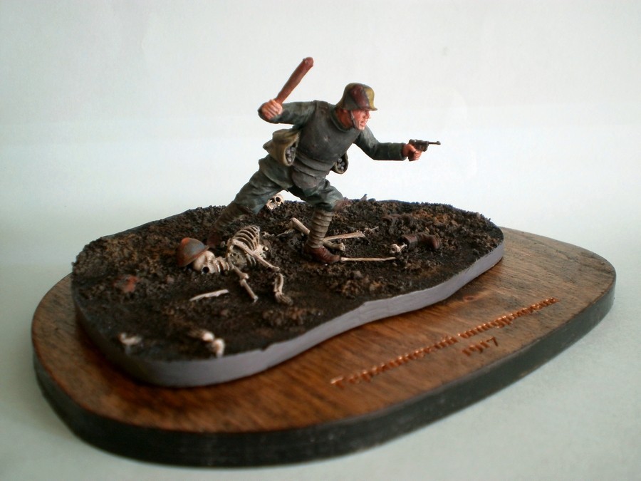 Кажется, первая моя фигурка из Великой войны - пусть Мастреклуб малость пофантазировал с этим окопным доспехом на штурмовике - здесь впечатление мне было важнее достоверности.