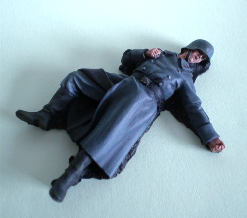 Бедолага-связист из Люфтваффе - скоро отправится на виньетку. Ставлю рядом фигурку Сталинграда и этого - верлинденовца. Не скажу дурного про складки одежды покойного, но скульптура лица у Зеленкова явно лучше.