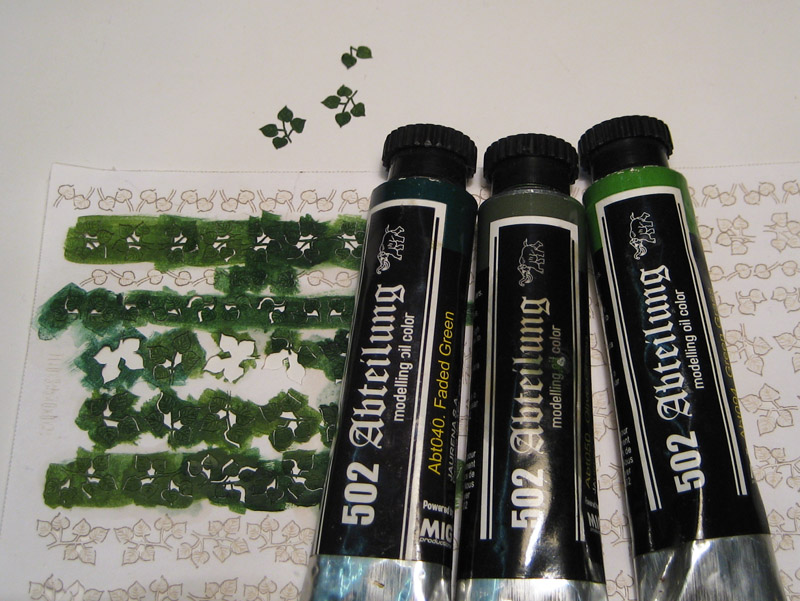 Я использовал бумажные листья фирмы Хабар, выполненные методом лазерной резки. Они были любезно предоставлены мне на пробу производителем. Также потребовались масляные краски и веточки неизвестного мне растения, найденные во дворе несколько дней назад