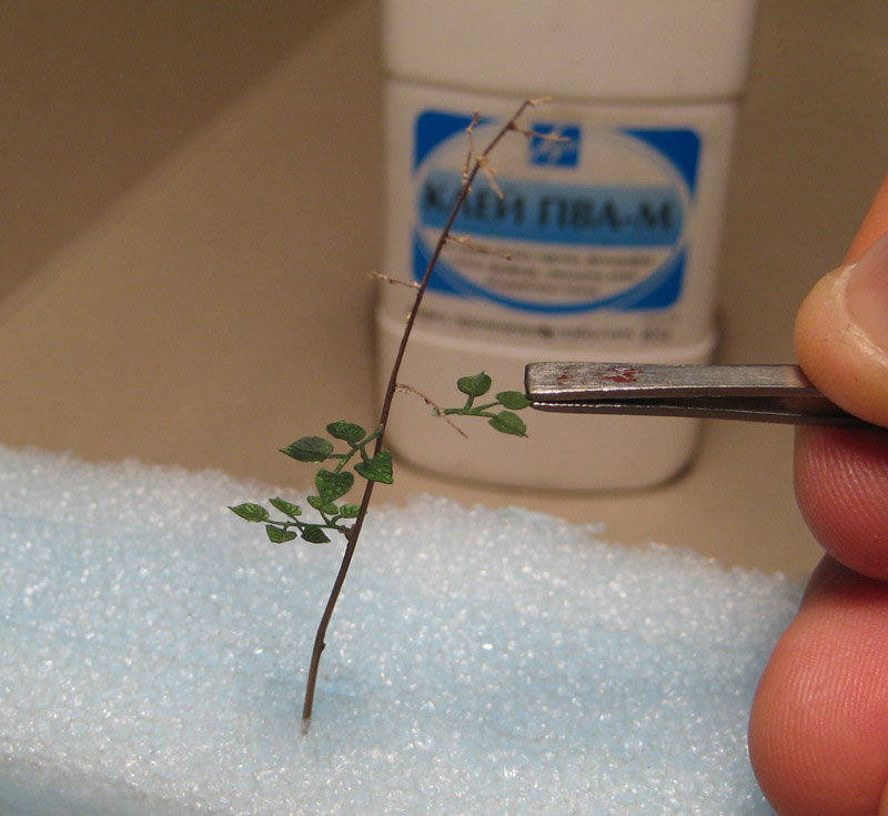 Финальной и, пожалуй самой трудоемкой процедурой является изготовление лиственного камуфляжа.