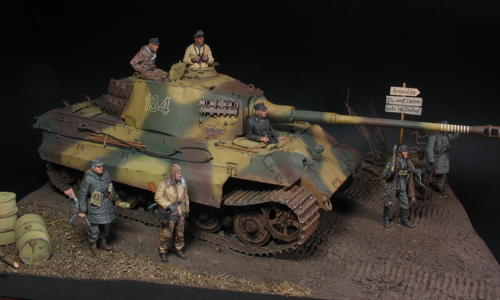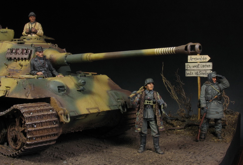 Закончил небольшую диораму с кингом."Последняя надежда III Рейха" Выставил на конкурс "Металлическтго тигра" на Дисше. Но надо и на "родном" сайте фотки выложить для обсуждения и опять же для конструктивной критики.