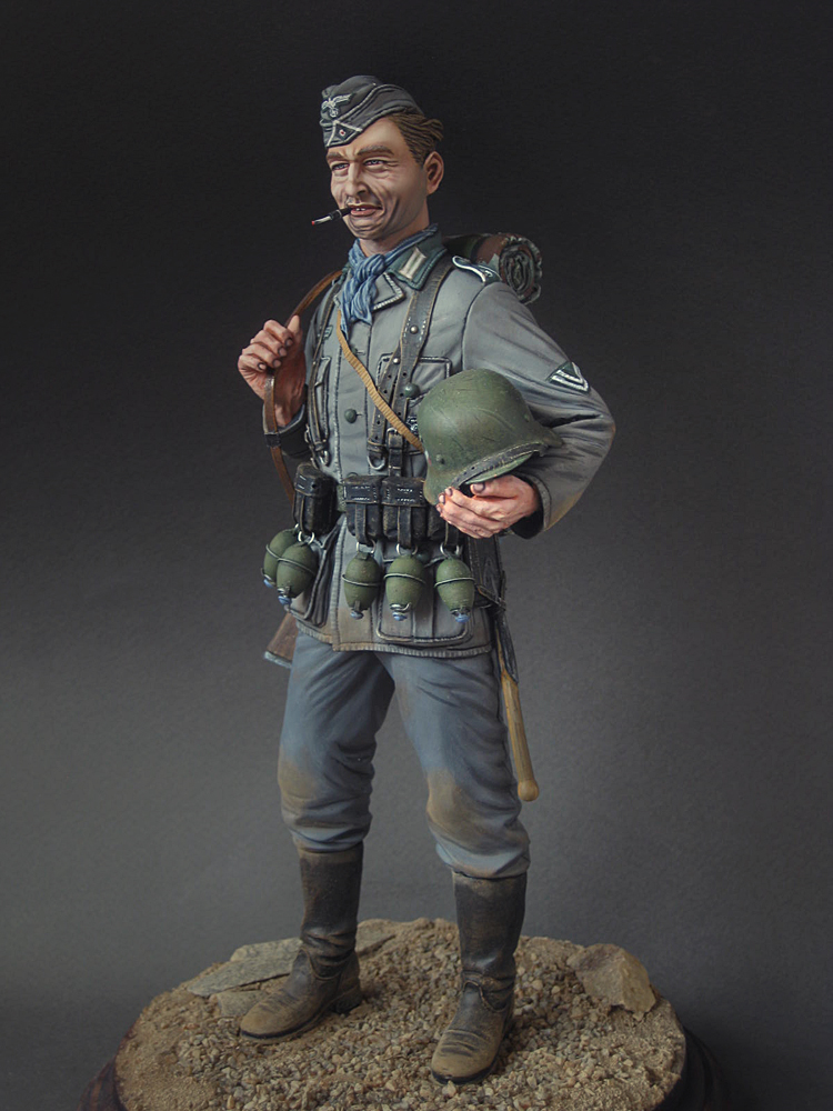 Omskiy Tankist Wrote:Константин Капитонов, понятно, спасибо, Костя. Поза какая-то у фигурки странная. Вроде как торс подался вперёд, а ноги на месте расслабленные остались. Ну да это к скульптору претензии, роспись у тебя как всегда - огонь!!!