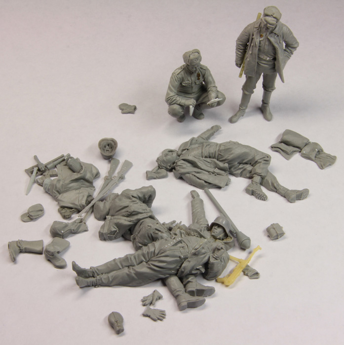 Ребята отличные получились , причём набор вообще универсальный - изъяв персонажа в комбинезоне можно сочинить сценку в траншее.