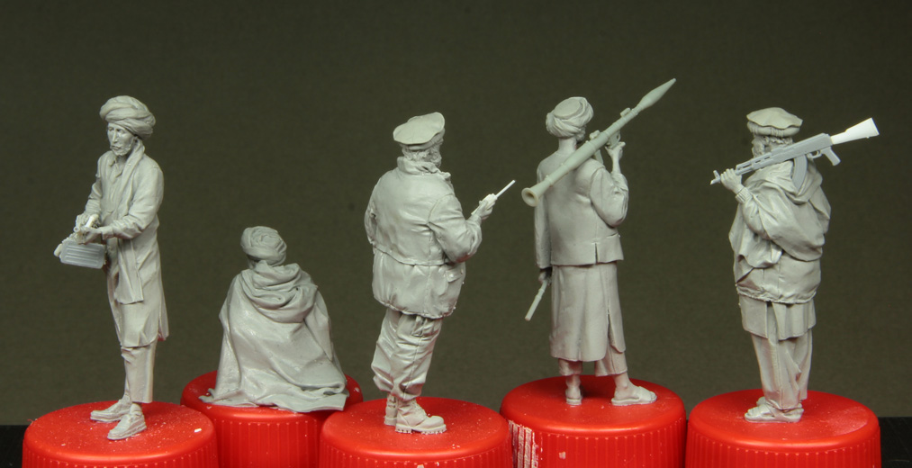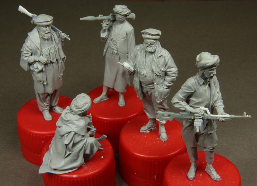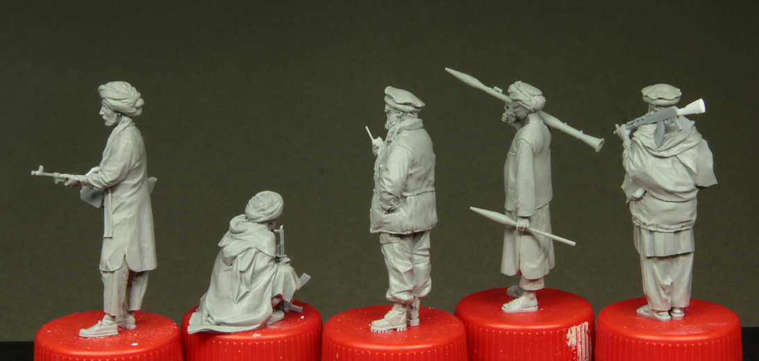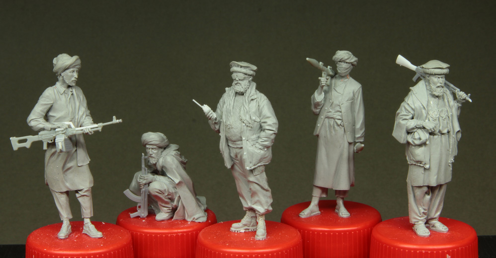 Решил начать с афганцев - очень живописные парни. Дети гор. Можно было бы налепить целую ораву в разномастных красивых восточных одеждах, но пока ограничусь этой пятеркой.