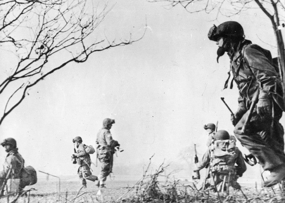 Американские парашютисты на операцию "Варсити" (форсирование Рейна) в марте 1945 г.