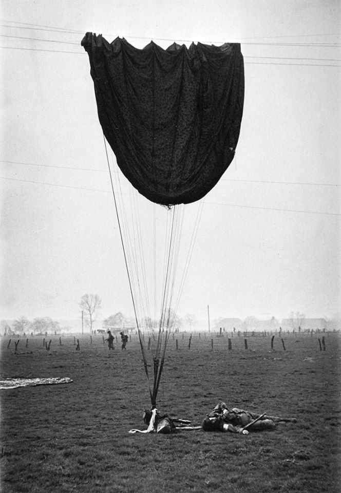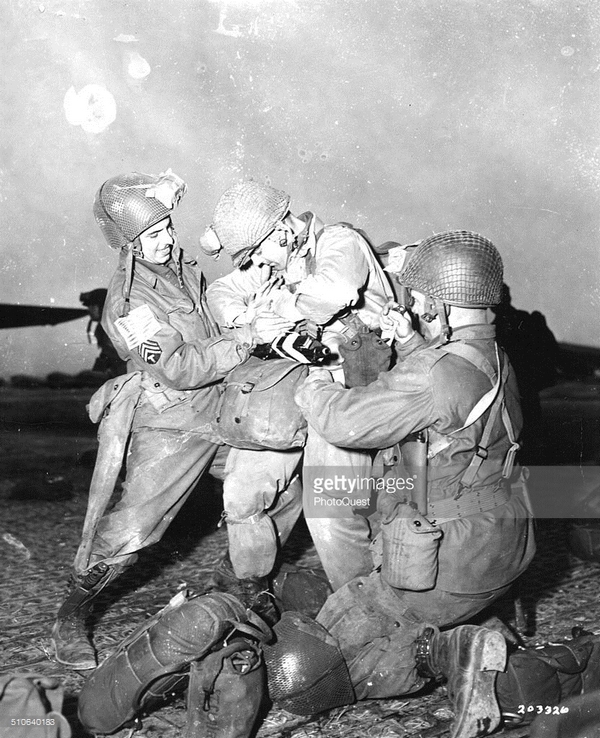 Дмитрий (Баев), я уже написал выше - большая часть фотографий сделана в марте 1945 г. во время операции "Варсити" - у большинства из этих фотографий есть четкая привязка на это время, т.к. они из известного фотосета Роберта Капы, который тоже прыгал с парашютистами. То есть это однозначно не "день Д". Другое дело что ветеран-то был из прославленной 101-й ВДД, а в "Варстити" прыгала 17-я ВДД. Это малоизвестное (расформировали после войны) и не очень боевитое подразделение. Их начали формировать позже чем 101-ю и 82-ю. Они воевали только в Арденнах, где их спешно бросили в бой как пехоту и в "Варсити". Собственно "Варсити" была их первая и последняя высадка, т.е. они были ещё "зелёные" (как десантники) и у них не было опыта 101-й.