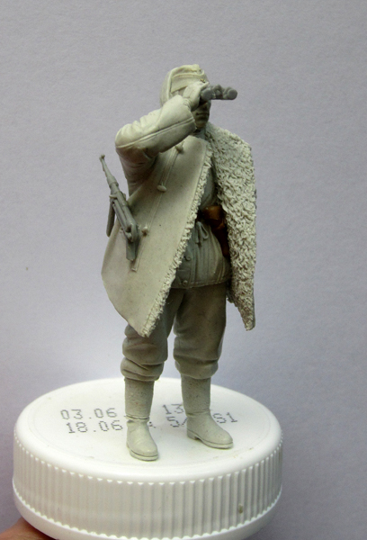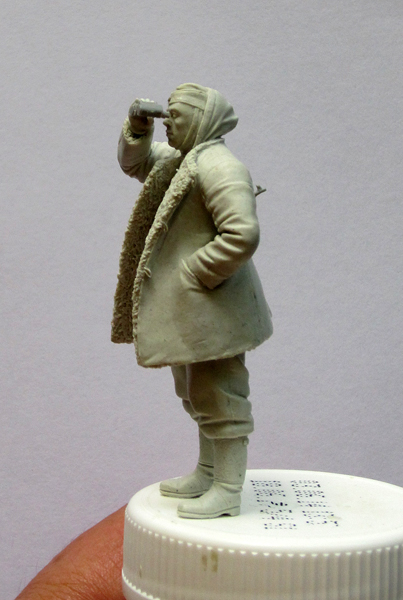 Высматривает наверное фатерлянд ,думаю при этом " куда я б... заперся." Ну а если серьезно - хорошая фигурка на зиму , но я бы уменьшил правую часть полушубка и складочку можно заложить для мягкости овчинки. Олег