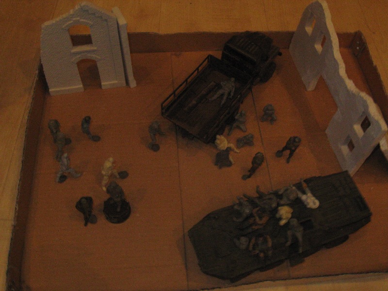 Сницер Анатолий, Толик успехов конечно, но! Поменяй развалины домов от Миниарта, а то смотрится как Нормандия в 44 - м. Здесь едиственный выход сделать самодельные. Панельные дома будут самое то.... И БТР по моему не на своем месте, перекрывает обзор, может стоит обойтись одной единицей техники ?