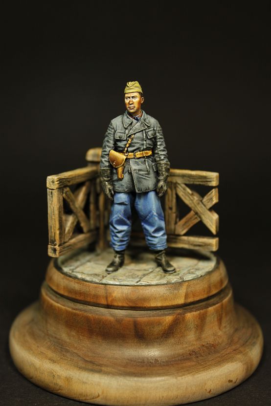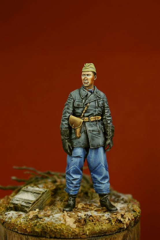 Фигурку от Алпайн,с великим множеством складок,можно дорабатывать бесконечно.Год назад,я уже сидела с этим танкистом,он никуда не годился и был забракован,как непатриотичный.Вот второй,надо работать тоньше,но пока получается только так.Жду замечаний.