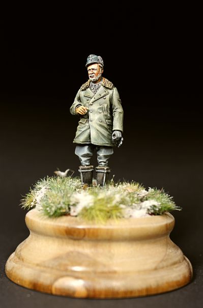 Дмитрий, имхо не так уж и велико основание, больше отвлекает внимание крупный рисунок фактуры древесины. Выбор древесины считаю также немаловажным фактором, да красивая фактура, но отвлекает внимание. Для одиночной фигурки на WWII больше подходят мелкослойные породы (срезы)