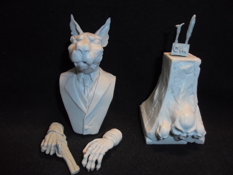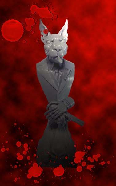 Всем привет!Решил я не бежать впереди паровоза и потренироваться на чем-нибудь простом.Бюсты никогда не красил,поэтому не уверен,что с первого раза получится что-нибудь путное.Решил потренироваться на"кошечках".Взял для начала в работу вот такой вот бюстик 1:10 от"Garry M.":Я его назвал"Дон Котлеоне".После сборки должно получиться это:Тут нет каких-то сложных элементов,хотя с пистолетом и часами придется повозиться.Ну и ухи немножко потрепать,оборвать,не бывает таких гладких у кошек.