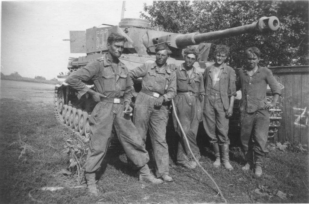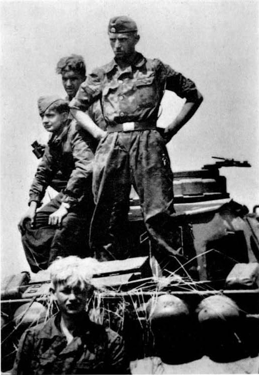 Это танкист СС на Курскую дугу и вообще на лето-осень 1943 г. Использование таких комбинезонов позднее этого периода подтверждается лишь несколькими фотографиями, то есть не характерно.