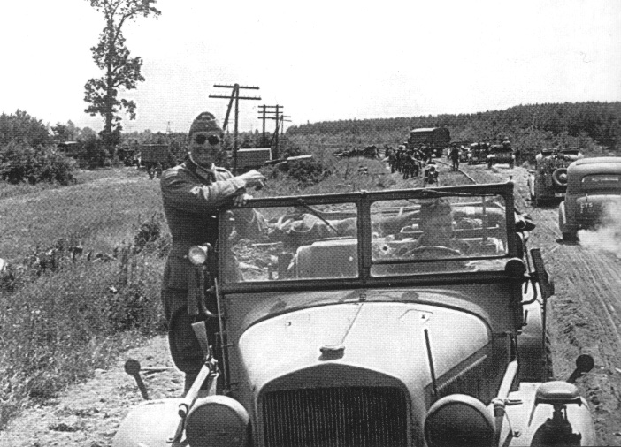 Немцы, вторгшиеся в бескрайние пределы Советской державы на авто-мототехнике премиум марок, дивятся на "Дер Руссиш Шверпанцер".