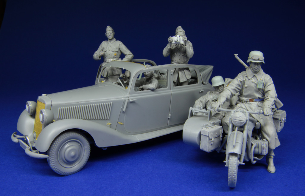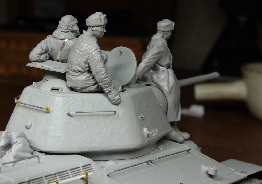 Фигурки решил сделать плотно связанными с танком. Так, с одной стороны, для коммерции плохо, но с другой они живее смотрятся. Маленько надоели универсальные фигурки Альпайн-стайл. Надо ещё полепить "интегрированных" танкистов и наших и немцев.