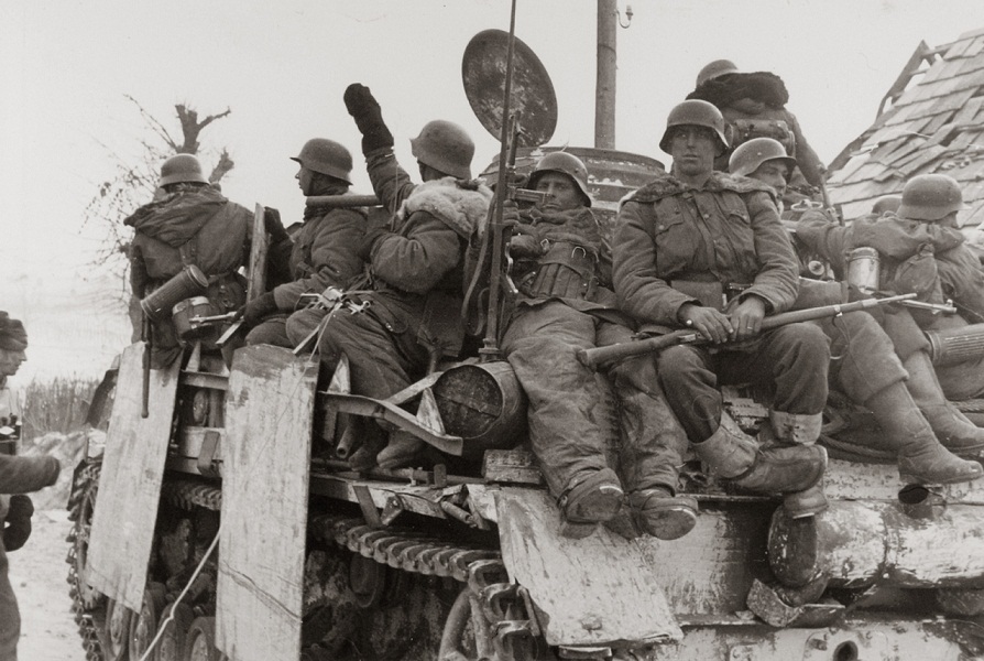 Судя по фото выглядели ССовцы довольно стандартно. Из характерных отличий конца войны: карабины без шомполов, ранние парки, поздние парки, штаны от парок, двухсторонний костюм, Штурмгеверы и Фаустпатроны, какие-то большие зимние сапоги, гранаты 1943 года, рюкзаки.
