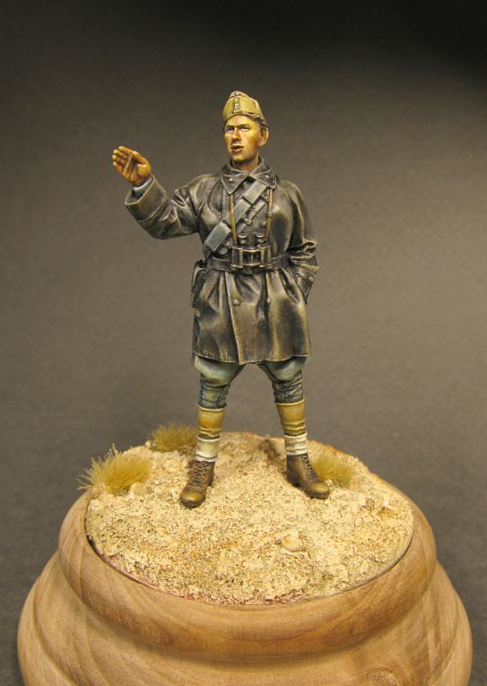 Константин Чиганов,Станислав Кривошеев,спасибо.Может что-то получится к конкурсу.Эту фигурку Алпайн уже окрашивала.Учитывая ошибки с ремнём автомата,перекинула ремень через шею.Он (ремень),перекрыл всё на кителе,значительно усложнив и сборку и покраску.[/b]