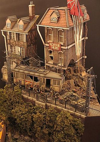 Что интересно - немецкие летчики носили парашюты ирвиновского типа, куда более удачные. Купол мог быть желтоватым с зелеными разводами - но такие парашюты у немцев встречались не так часто, обычно белые. На диораме, похоже, грузовой парашют - яркий, чтоб легко было найти.