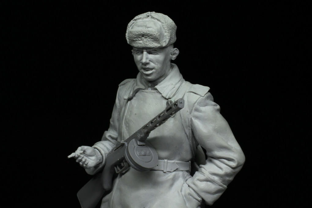 Я тоже думал про опционную голову в пилотке, но что-то я устал уже от него и не совсем фигуркой доволен. Пожалуй, образ нашего солдата в пилотке мы оставим для следующей фигуры (или бюста).