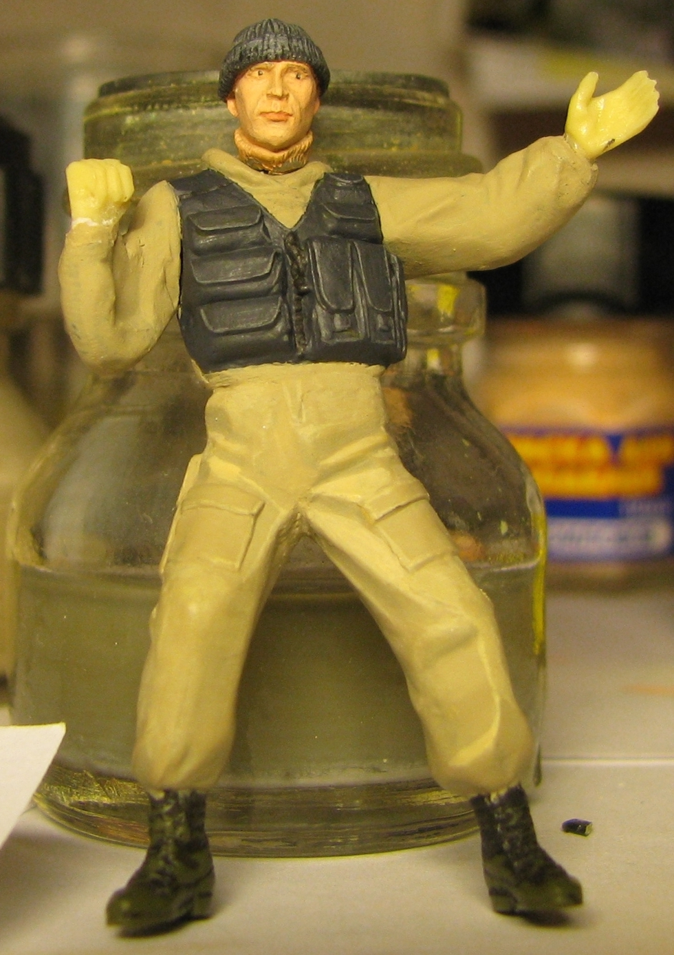 Swarog, ну .. конечно конверсия это громко сказано. Фигурка из набора Миниарт в котором немцы занимаются погрузкой бочек. Взаимозаменялись руки, при помощи миллипута доработан "узел" рука - плечо.