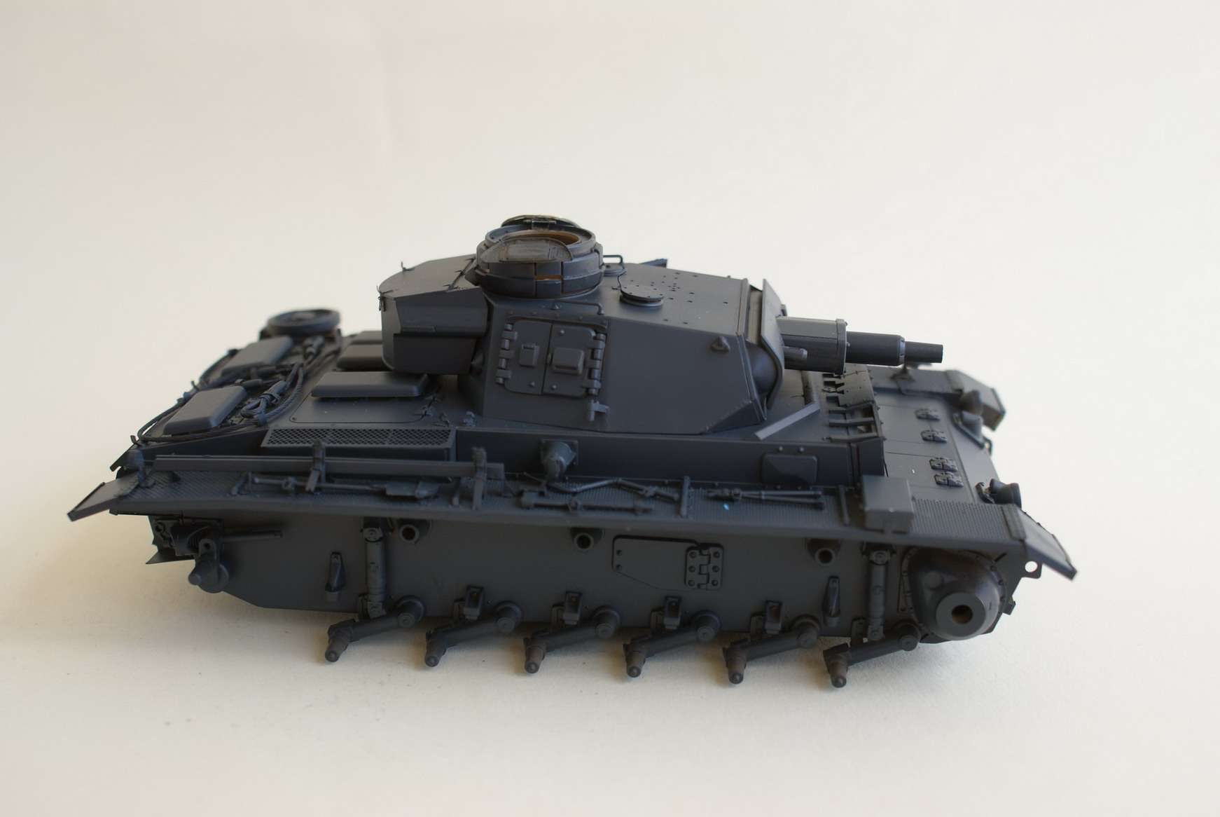 Приступил к окраске: после ванны с "фейри", покрыл весь танк акановским - Dunkelgrau, получился, имхо немного темный, но на исходном фото тройка тоже темная.