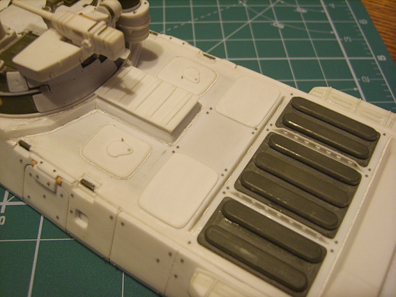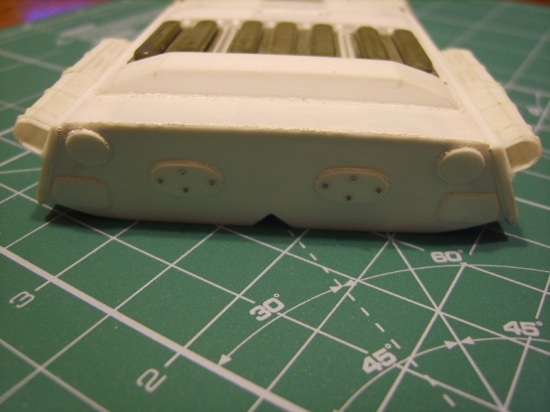 Снова принялся за корпус. Вклеил задний лист, сделал кожухи выхлопов (замучился выпиливать