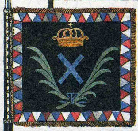 Кстати, синий фон указывает на семеновцев. У преображенцев знамена традиционно черные.