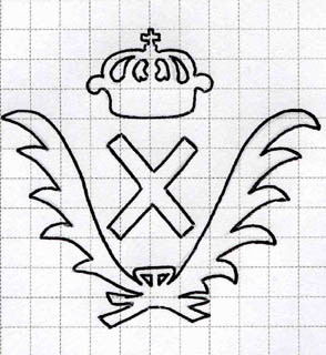 Декорировать я собираюсь лицевую и тыльную стороны основания. Как я писал выше, лицевая сторона должна напоминать о ротных знаменах Лейб-Гвардии Преображенского полка начала XVIII века. Темный оттенок шпона, как напоминание о черном цвете полотнища, украсит накладной узор из латуни, повторяющий изображение на знаменах гвардейских полков обр. 1707 года: Андреевский крест под короной и две пальмовые ветви по бокам - http://www.viskovatov.narod.ru/T02/Ris/220.jpg