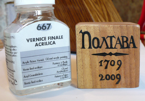 А тыльная сторона, будет нести на себе надпись, посвященную отмечаемому событию, почему и выбран был для этой цели шпон светлого оттенка, имитирующий пожелтевший пергамент.