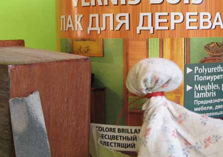 Процесс прозрачной отделки начинается со шлифования основания. Для шлифованию беру мелкозернистую шкурку на бумажной основе (или на тканевой, но отработанную). После шлифования приступаем к нанесению прозрачного защитно-декорирующего состава. Для этой цели можно использовать различные лакокрасочные материалы, но я остановил свой выбор на полиуретановом бесцветном блестящем лаке (французского производства). Для нанесения лака использую тампон, изготавленный из хлопковой ткани и поролона внутри. Первый слой лака выполняет роль грунта. После высыхания, впитавшийся в древесину лак поднимает на ее поверности ворс, который следует удалить мелкозернистой шкуркой. Затем наношу второй слой лака и оставляю до полного высыхания. Производители лаков пишут, что для достижения полного эффекта достаточно нанесения двух слоев, но я наношу еще и третий, финишный слой. Правда не чистым лаком, а смешанным с уайт-спиритом (три к одному). Этим слоем я как бы полирую поверхность, придавая ей мягкий блеск и прозрачность.