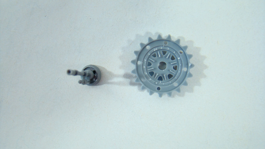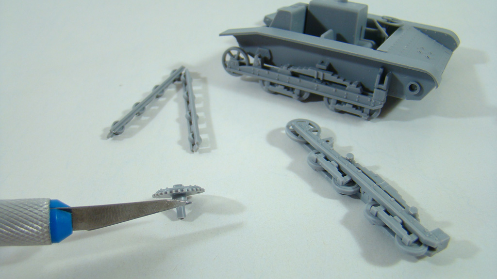 Как бы там ни было я продолжал сборку,собрал в кучу ходовую,тут проблем практически не было все встало на свои места,да правда эти длинные соединяющие рамки имеют щели, но в собранном виде их не будет видно так что можно даже не зачищать и не обращать внимания. Да и звездочку пришлось подрезать так как вставленная трансмиссия заняла часть дырки.