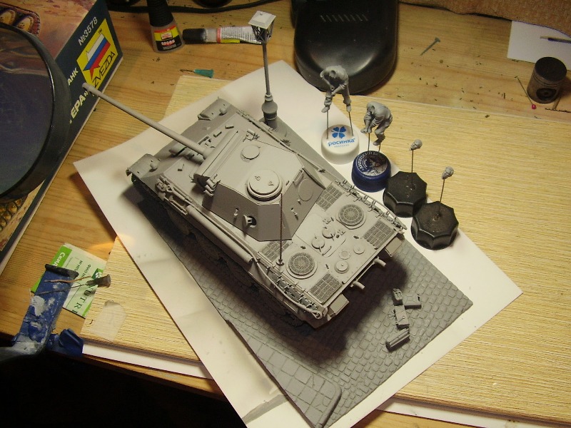VN-MASTER, простите если не прав,мне кажеться что основание мало.Я думаю что диорама это кусочек реальной жизни в реальном времени(даже если в прошедшем),в реальном месте.Рамка диорамы это то что отделяет диораму от настоящей жизни и в даном случае то что пушка пантеры выходит за край ИМХО не совсем хорошо.По моему ни одна деталь не должна выходить за границу основания.Если не прав-исправте меня.С уважением!
