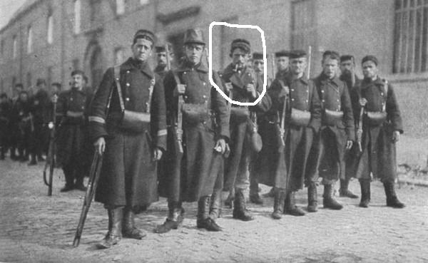 Ланской Олег, хорошая сценка) Я думаю, молодому французу можно "дать" бежевые вельветовые штаны и, возможно, обмотки, а пожилому оставить красные и короткие краги. Также пожилому можно сделать бороду. Бельгийца предлагаю сделать лицом похожего на этого (качество не ахти, но типаж рассмотреть можно):
