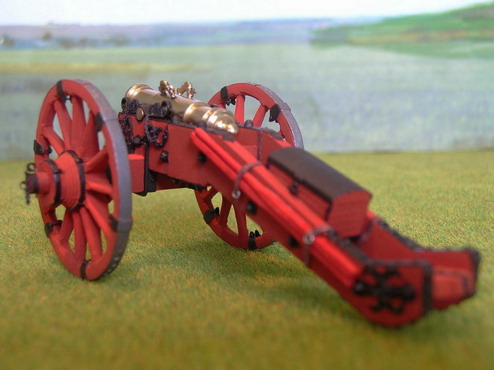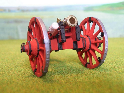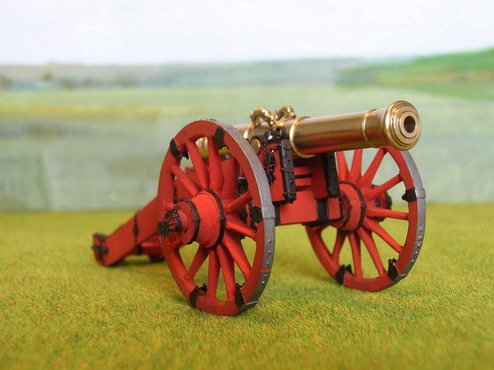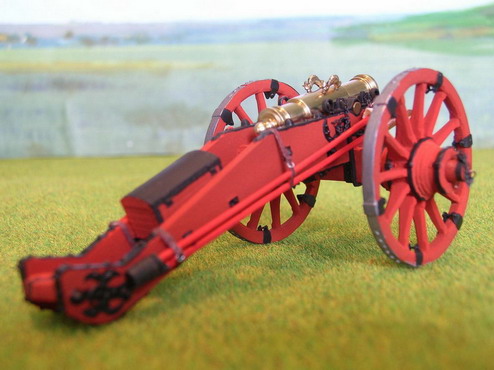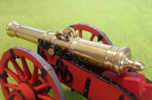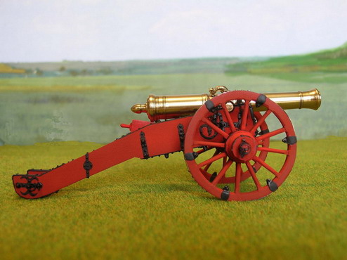 Как говорят режиссёры в кино:"Всем спасибо". А теперь финальная стадия. Загрунтовал модели из баллона CrafS spray" под сурик.Далле аэром в красный цвет. Стволы покрыл двумя слоями жидкого лака НЦ-218. Старые мастера делая модели для государя и музея так поступали. Правда лаки были другие.Потом покрасил оковки в чёрный цвет масляной крвской, кистью. Поставил стволы, навесил цепочки. Вот результат.