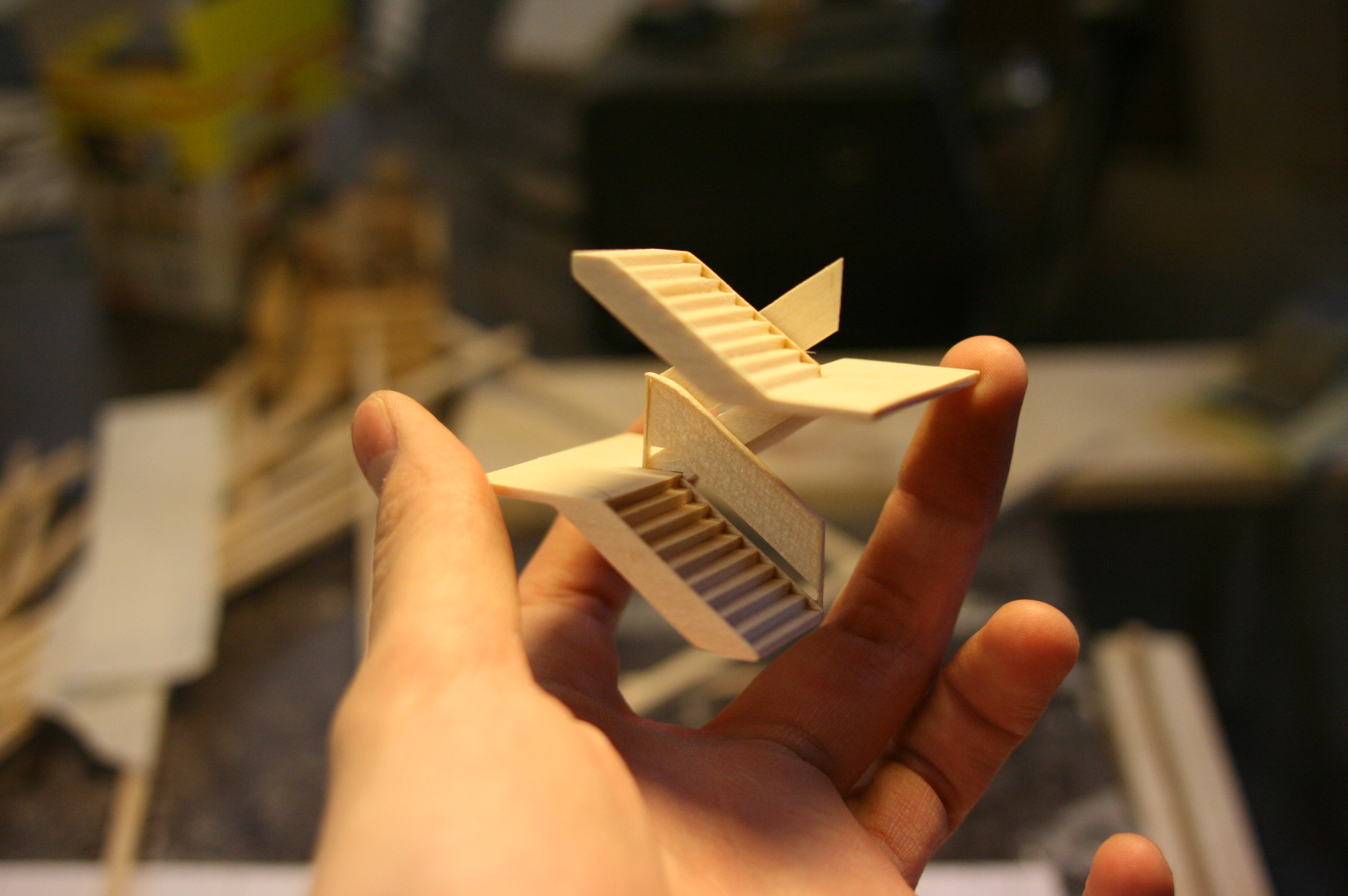 С яхтой вообще весело получилось. когда мы делали модель, Голландии на верфях делали её же только настоящую. и за время её сборки чертежи менялись 6 раз. из за этого пришлось сделать 6 новых яхт.