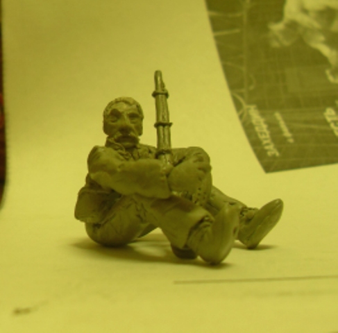 Ну вот,все разбежались, можно посидеть в блоге.Три следующих дня проведу в дали от компа, посему накидаю план работ.Ну,подточить-подпилить:само собой.Главное не поспешить и продумать: как на левый бок навесить сумку,флягу,штык и котелок/кружку, чтоб смотрелось красиво. Южане носили в скатках одеяла, но не всем было так роскошно.Учитывая позу Джонни надо решить: есть ли у него одеяло или нет? Боюсь перегрузить фигуру, хотя понимаю,сколько недостатков скроет скатка.Да!Штык в ножнах ещё надо сделать.Ремни на ружьях были не у всех(их нередко снимали для иных нужд,благо носили ружья на плече), но крепления(забыл как называется то, к чему крепится ремень) надо сделать(жуткая мука для моих глаз).И сразу убрать ружье повыше от четвероногого.Кстати,сделал его намеренно подлиннее,а то не смотриться с надетой на ствол шляпой,думаю этот грех простителен ради композиции.Плюс уже обдумываю окраску:брюки-орехового цвета или трофейные штаны северянина?С курткой тоже богатый выбор:серый,ореховый,черный.Принятое решение не буду претворять в жизнь: подожду советов,может будет лучше. Надеюсь на подсказки и советы по делу и жду!