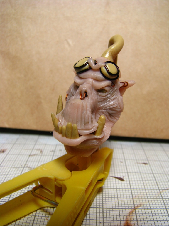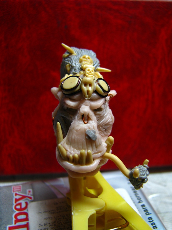 вынужденное отсутствие возможности окраски - маленький ребенок. заставило меня обратиться к лепке. решил слепить орка. умудренного в боях ветерана. пока работаю над головой. есть лицевая часть. затылок, грива и украшения на шлеме еще впереди.
