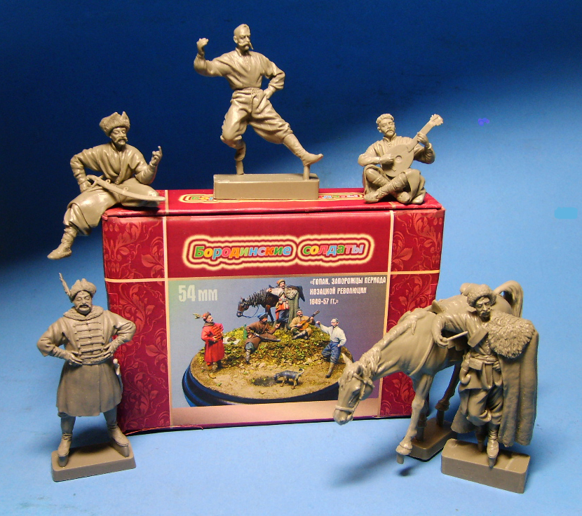 Но я не вижу на коробке названия фирмы и набора по-английски. Что, распространение на западном рынке не планируется? Зря, их рынок много больше чем наш и количество жителей и уровень их доходов с нашим не сопоставим. Поэтому, если планируется более-менее серьезное предприятие а не чуть больше чем хобби, то настоятельно советую обратить свой взор "за кордон". Ну и набор в пять фигурок плюс лошадь - это, конечно, хорошо, но, опять таки, с коммерческой точки зрения настоятельно советую продавать их и по-одному тоже.
