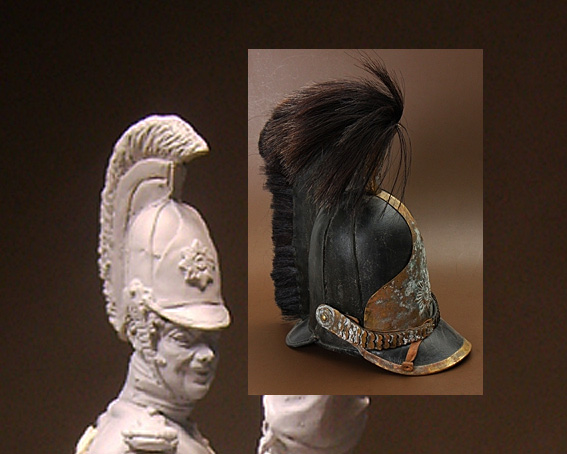 по поводу касок, если вкратце - каски на 12год могли быть двух видов, либо близкая к типу 1803г, более округлая и чуть более приземистая (как австрийская армейская каска, с которой ее и делали), и более скажем так, "стройная" обр 1808