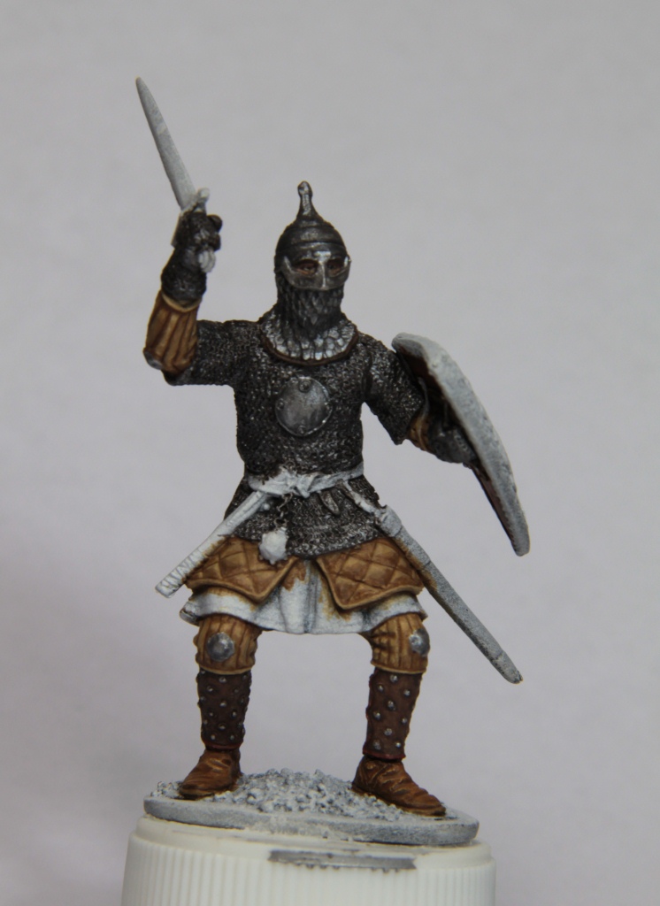 кроме глаз, пожалуй стоит усы более контрастные сделать брюнетистые и борода не помешает - в то время все мужчины бороды носили, а то жёлтые слились с лицом; выделить скулы высветлением