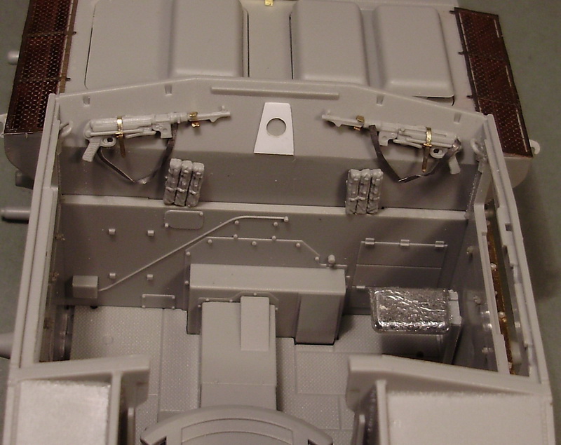 Работаю над интерьером:сложив детали рубки пришел к выводу, что видно будет не особенно много нутрянки.то что теоретически можно будет увидеть я дорабатываю.Это крепежные гайки уголка (они выходят частично на рубку частично на ванне корпуса), добавлены подсумки для МП 40, а сами крепления автоматов доработаны.Сейчас работаю над проводкой радиостанций.