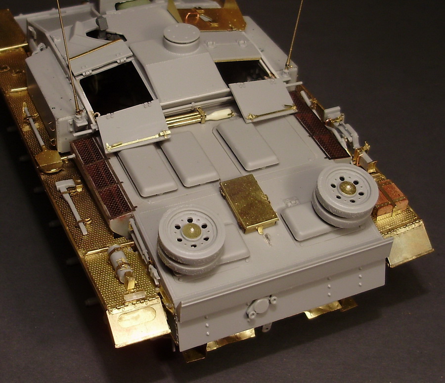 -добавил доп бронирование в виде траков на бронировке радиостанций (судя по фотографиям почти все машины этого подразделения имели такую особенность)