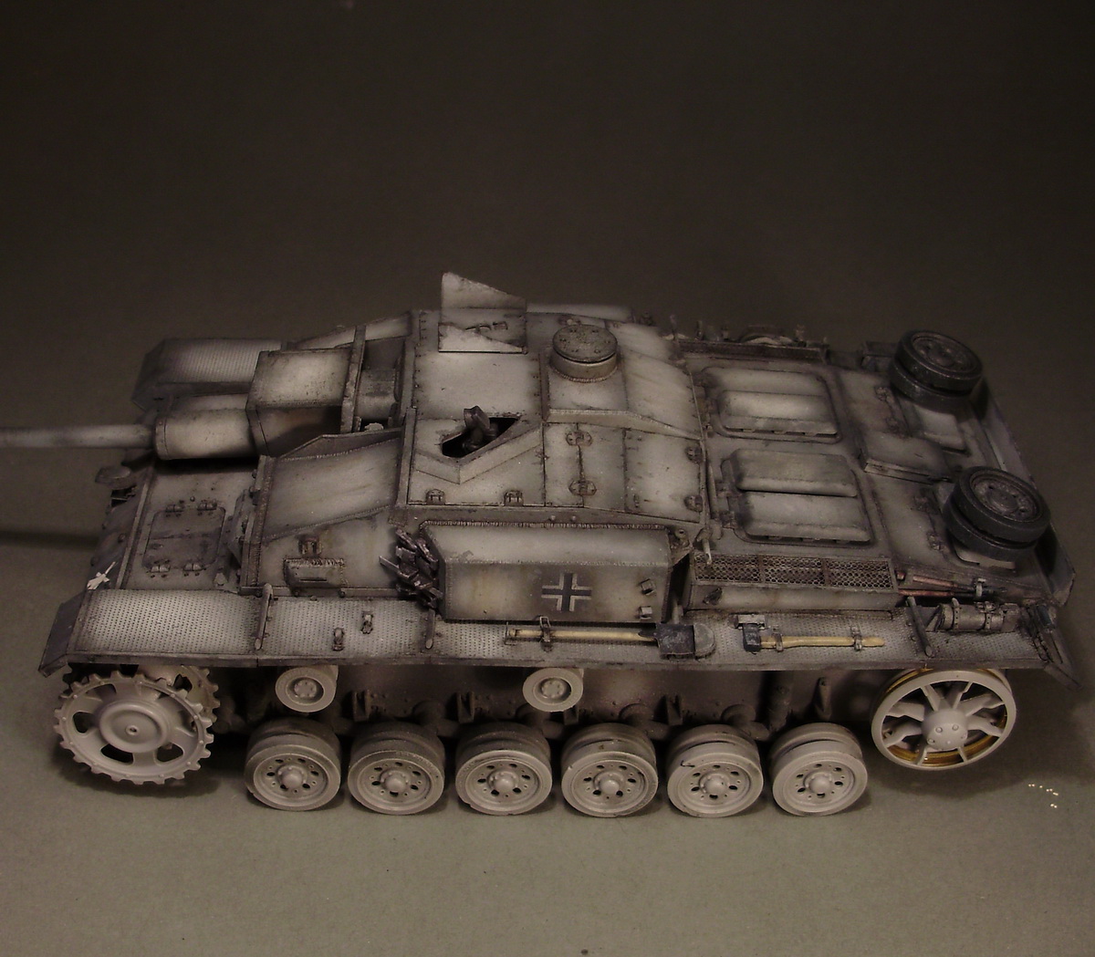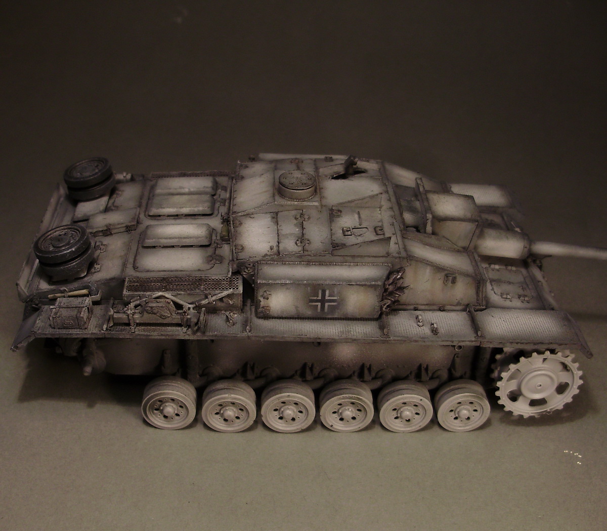 Никифоров Андрей, Андрей, я изначально хотел сделать Штуг на зимних траках, поэтому пока ориентируюсь на изкоробочные. Со стволом пока размышляю.