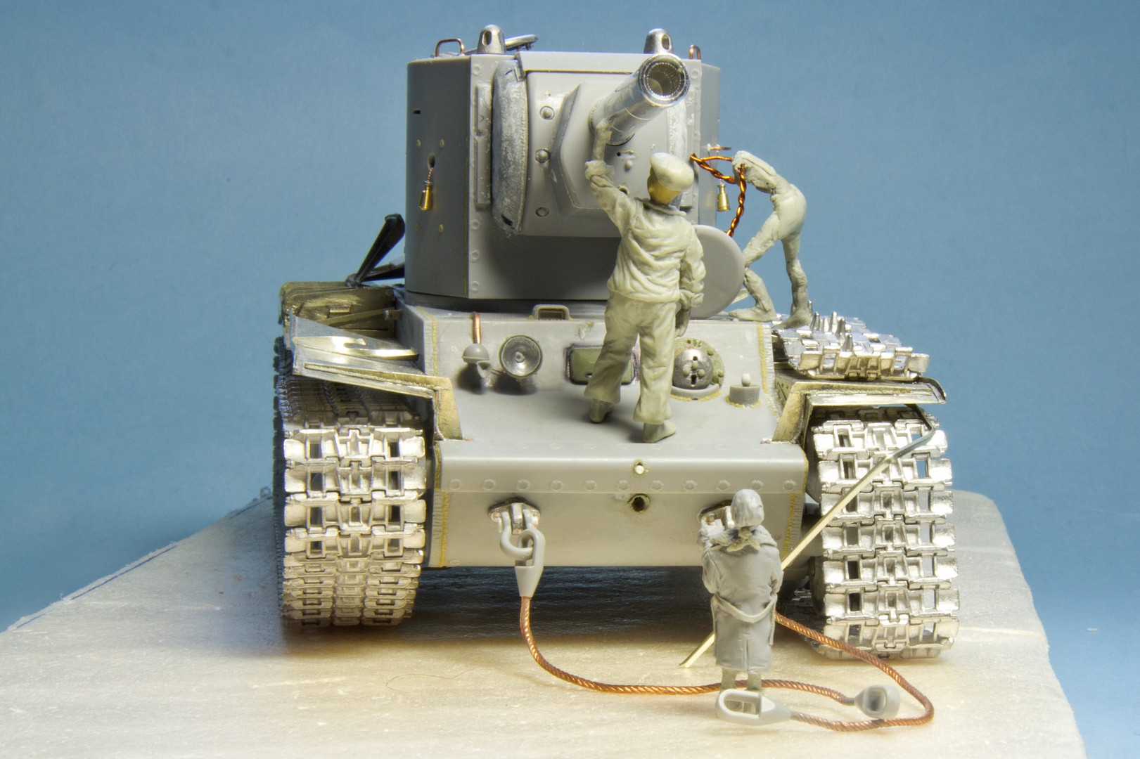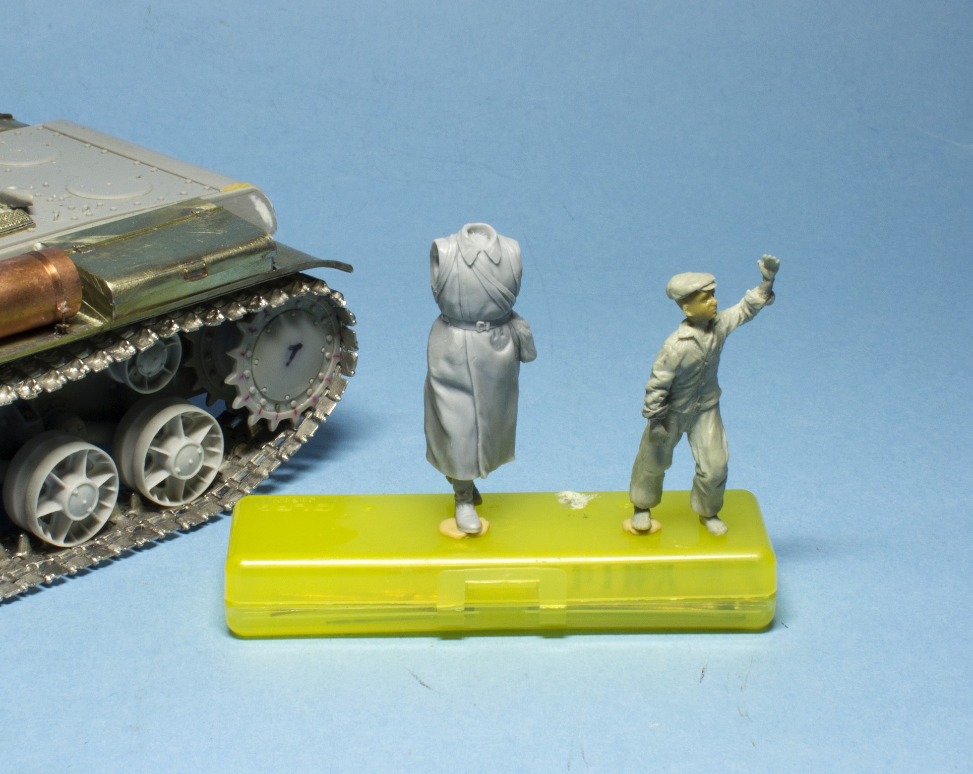 решил попробовать себя в лепке фигур. Сваял пацана на КВ-2. Получилось черте-что, но вроде похоже на человека... Планирую вот такую сценку с КВ-2