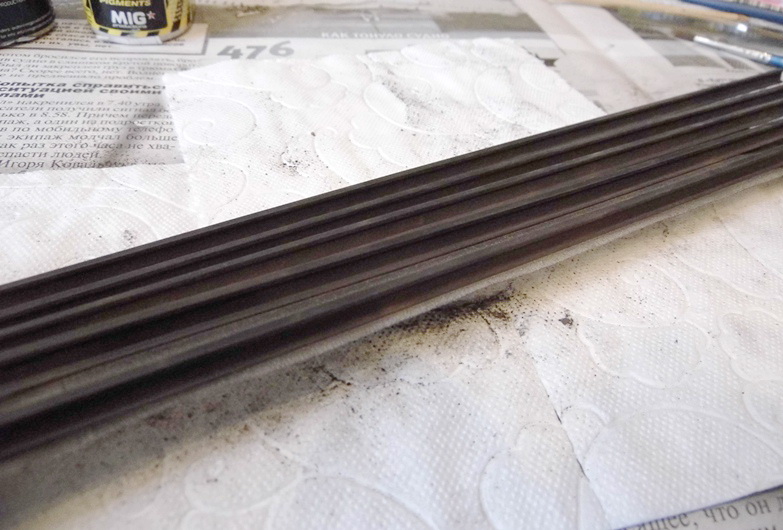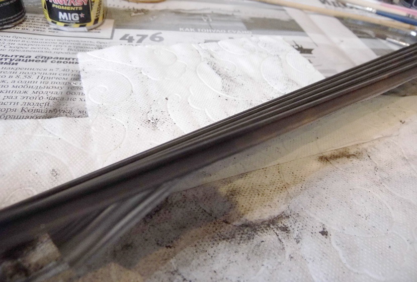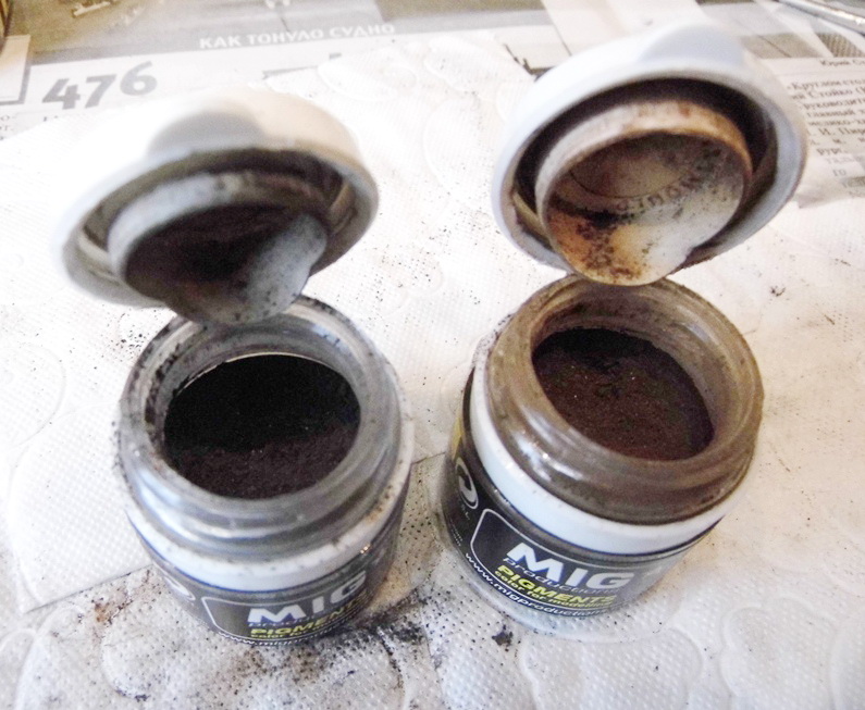 После того, как покрасил рельсы черным матовым акрилом от Тамии нанес по всей длине пигменты. Вот основные тона...