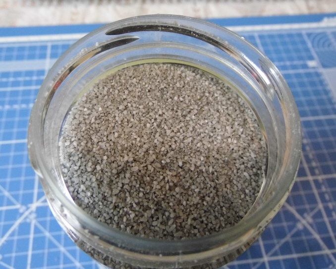 Вот такой "щебень", купленный в магазине "Икея" (правда в Швеции). Размер гранул 0,8-1,2мм, что в переводе в 35-й масштаб полностью соответствует необходимой фракции.