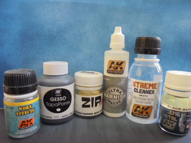 Немного информации по хим.продуктам с фото.Сначала по краскам"Scale color".Очень густые,их надо сильно разбавлять родным растворителем.Я пробовал Валеджио и дистил.воду,тоже можно,но краска в палитре ходит как ртутный шарик,неудобно.В мокрой палитре по пергаменту получше,но не ахти.Насчет укрывистости 5 с+.Насчет суперматовости...-я еще могу понять,что такое суперглянец.Металлики в основном для придания оттенков.Очень понравился черный цвет.Вывод-по деньгам лучше брать Валеджио,да и выбор оттенков больше.Тут полцены берут за красивую картинку.Про экстрем металлики писал,пока не понял.Очень полезная штука-пластилин для камуфляжа.Легко накладывается,также легко снимается и не оставляет жирных пятен,отпечатков.А,главное,он не прозрачный как Миговская жидкая маска.Я им пользовался для окраски держалки на звере с использованием"Worn effects"от АК.Тоже классная вещь,сколы получаются натуральные,такие кисточкой не нарисуешь,всем советую.ДА,и,наконец,ультраматовый лак АК.Его очень трудно выловить в магазинах(сразу разбирают),но постарайтесь.Убирает полностью блеск от масл. красок,акрила,клея,лака,декалей,выравнивает поверхности.До вечера пока все.