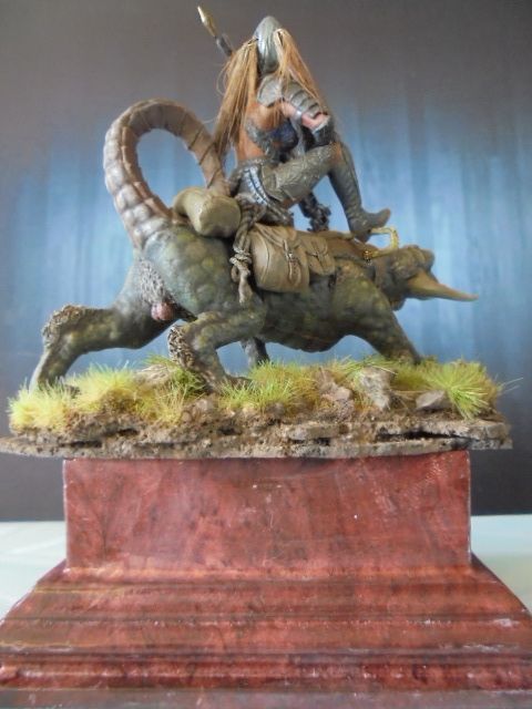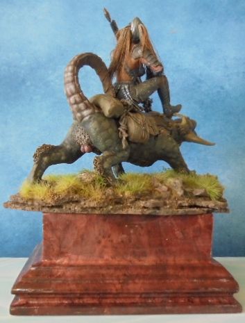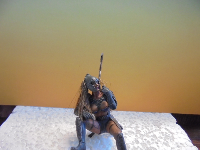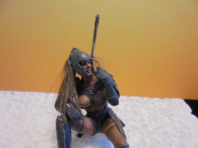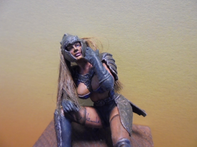 Добрый день.Одел амазонку в доспехи,убрал блеск матовым лаком.Сейчас доделываю волосы,вечером выставлю на суд.Зверя задул прозрачной смывкой посветлей из набора АК"Камуфляж".Потом прошелся по рельефу тонкой кисточкой более темной из того же набора.Была безумная идея задуть из аэра камуфляжные линии лаками"Хамелеон" для ногтей разных тонов,но побоялся испортить.Потренируюсь потом на кошечках.Ну и примерил предварительно обвес.ДА,продолжаю бороться с ф.а.,извините.