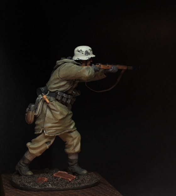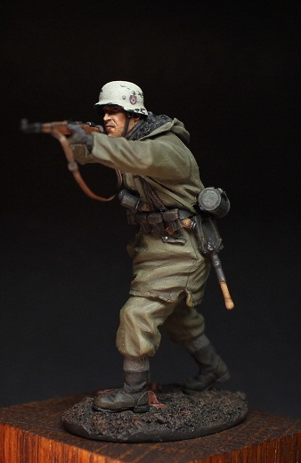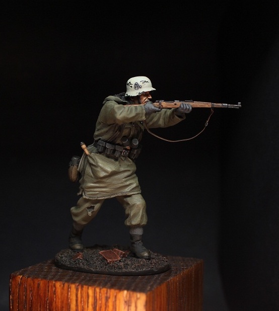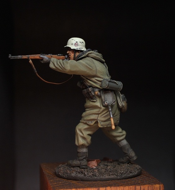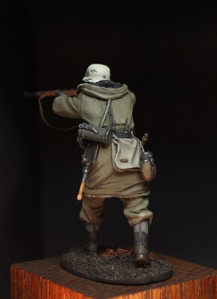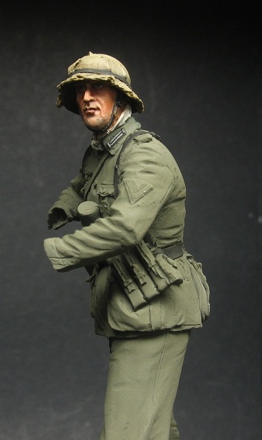 Михаил_Малинин, Михаил,все смотрю на фрица и понимаю,поза нравится,а вот морда лица -нет.Особенно нижняя часть.Подбородок слишком масивный ,на мой взгляд,даже скорее гипертофированный.Росписью будет крайне тяжело отыграть.