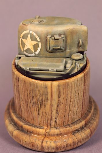 Александр Зеленков ,задача уместить двоих.Эта подставка не пойдёт.Поступило другое предложение.На танке давно был "поставлен крест",т.к. он побывал в руках,давно выросших детей.От него заказчик ампутировал небольшую часть и предложил мне нанести на него белую звезду в круге на зелёном фоне.По-моему не сложно.Думаю снизу подклеить ещё слой пластика.